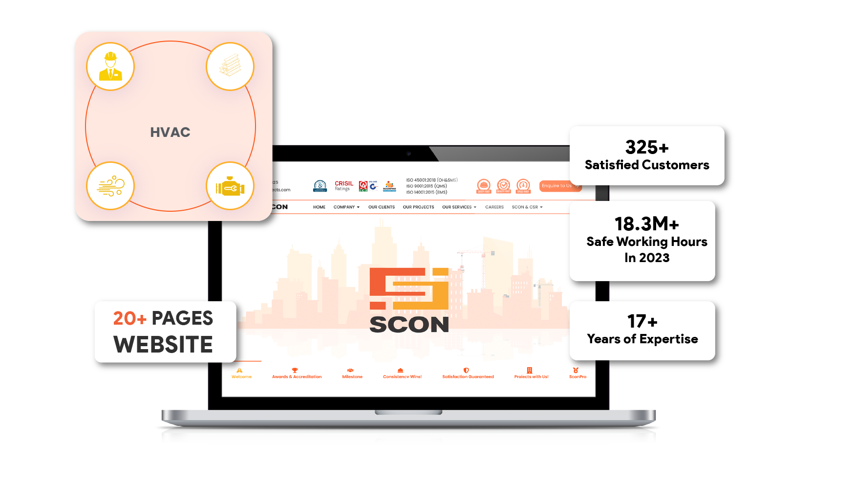 SCON Projects is a leading name in the construction and real estate industry, specializing in delivering innovative and high-quality solutions to real estate developers, architects, and industrial clients. Despite being an established and trusted brand in the industry, SCON Projects had no online presence, relying solely on traditional offline methods to communicate their expertise. They sought to transition into the digital space to enhance their brand visibility and attract a wider audience.
